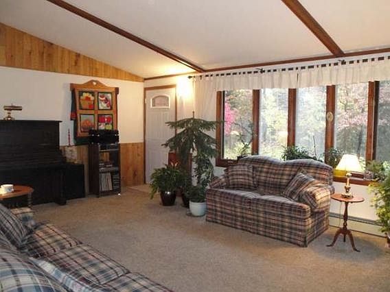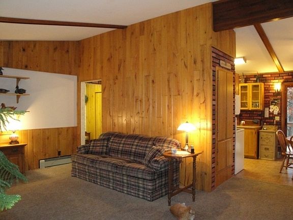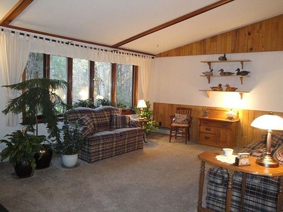 Situated on a private & wooded 2 acre lot on a quiet, dead-end road, this 3 bedroom, 2 bath country home is only 1 1/2 miles from town. The home features a spacious living room with vaulted ceilings & updated carpeting, quartz counters in the kitchen, & dining area with patio doors that lead to the full length deck overlooking the woods. 4 bedrooms & a full bath are down the hall. Downstairs is a large family room with walk out, guest room, full bath, office & laundry room.