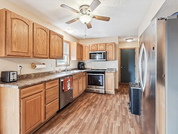 Welcome to this charming 3-bedroom, 2.5-bath, two-story home with over 2,000 sq ft of finished living space! Inside, you'll find a well-designed layout with a large and open kitchen with a generous pantry, and all appliances are included, making your move even easier. Upstairs you'll find 3 bedrooms and two baths and the master suite has been fully remodeled with hard surface floors. With plenty of space and great features throughout, this home is perfect for comfortable living. The walkout finished basement provides extra living space, ideal for a recreation room or other hobbies. Enjoy the cozy four-season porch of the kitchen as well and step out onto the spacious deck overlooking the fully fenced yard, perfect for outdoor entertaining. The property also features a two-car garage with an additional concrete slab on the side, offering extra parking or storage options. Schedule your showing today!