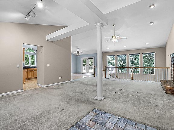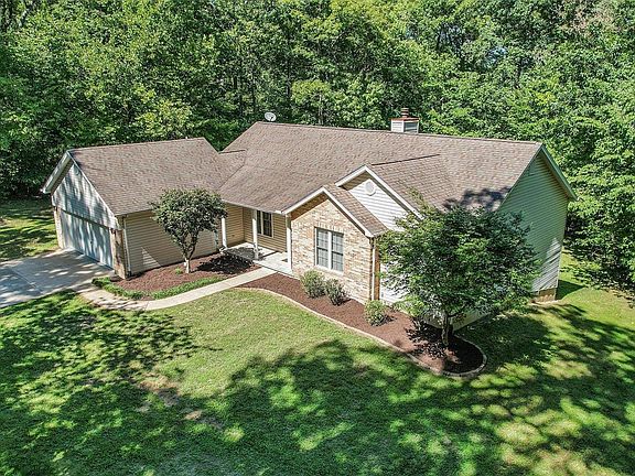 Welcome home to your private wooded oasis with direct access to the subdivisions private stocked lake. Mature trees surround your stunning 3+ acre lot where no neighbors are to be seen, imagine the colors in autumn. This spacious atrium ranch has a brick elevation and front porch to greet your guests. Off the garage is a large main level laundry/ mud room. The kitchen features SS appliances, 42” cabinetry, and an attached breakfast room. Off the breakfast room you can enjoy the beautiful view and glimpses of the lake from your composite deck. The open living room with high vaulted ceiling is soak with natural light from the wall of windows. The living room opens to the dining room as well. The primary bedroom with 5 piece en-suite and 2 additional bedrooms complete the main level. The finished walk-out lower level is complete with another bedroom/ entertainment room with a wet bar, a family rec room, additional sleeping room an additional full bath and plenty of storage!