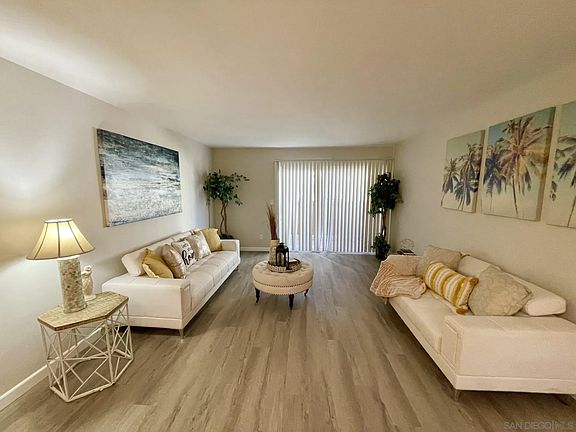 Incredible opportunity to own this beautiful corner unit situated within the highly sought-after gated community of Village Square in the heart of Clairemont. This residence boasts ample square footage for comfortable living, an inviting open floor plan, a dining area merging seamlessly with the living room, and sliding doors leading to a private patio. Recently upgraded with fresh paint throughout, newer interior doors, and ceilings fans, this unit radiates a modern touch. The complex offers a plethora of amenities including pools, spas, a BBQ area, a recreational room, and on-site laundry facilities. The condo complex is beautifully landscaped with lush greenery lined pathways, creating a serene ambiance Conveniently located within walking distance to shopping centers, restaurants, and entertainment options, this property is truly a gem!
