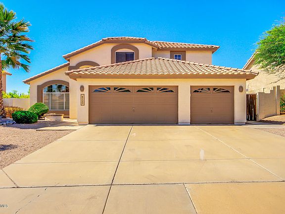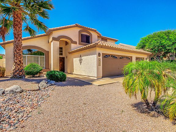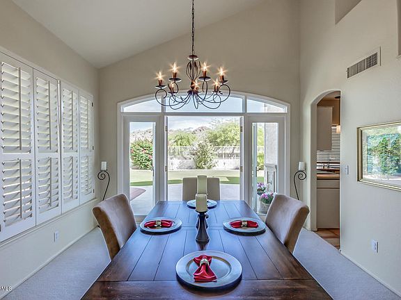 This spacious home is an absolute entertainer's delight, from inside to outside! Home sits above & backs to a lovely open area! New wood flooring on the elegant stairway, upstairs hall & downstairs bedroom/office. Kitchen has newer stainless steel appliances, decorative cabinet accents, CaesarStone Quartz counters with decorative tile features. Two sets of new high end patio French doors, one in the Dining Room & the other in the family room, allows your party to spill out onto the expansive, welcoming rear patio & yard, complete with Built-in BBQ area & spiral stairway to the upper balcony with expansive mountain views. The huge Master suite, with new French patio doors, opens onto the balcony for your private mountain viewing. Exterior was painted in 2011 & home is pre-wired for security system. Two newer AC units; wood shutters. Home is located in private Pete Dye designed Golf Community of Red Mt Ranch!