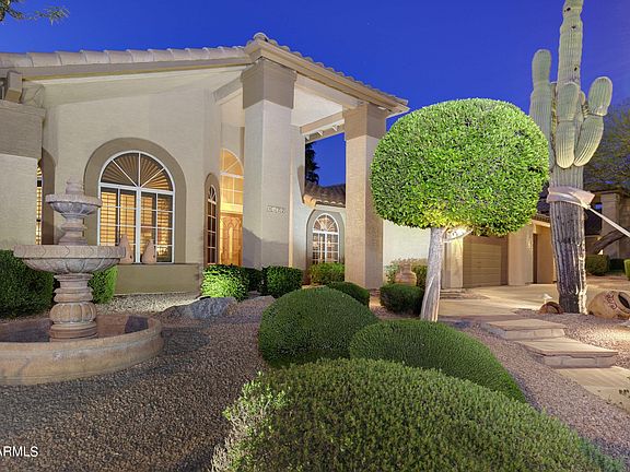 As you drive past the manicured grounds and lake, on a quiet street your pristine single level home awaits. As you enter you will appreciate the soaring ceilings and lots of natural light. Fine finishings including wood shutters, two fireplaces, a wet bar and neutral colors. In addition to the three bedrooms is an office with built in credenza and a desk where two can work at once which is perfect for Zoom meetings. While you will love the home, the lifestyle the area provides in just as valuable. Quick access to Scottsdale and Phoenix via the 202, you are a mile from great dining and right by the Tonto National Forest for biking, hiking, fishing etc. Click on the 3D Walkthrough under virtual tour section to walk through every inch of the home from your computer or mobile device.