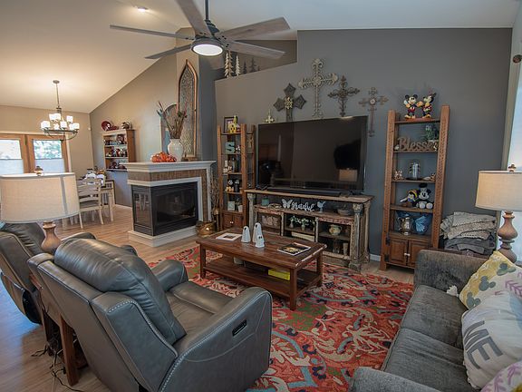 Welcome to this stunning 5-bedroom, 3-bathroom home located in the highly sought-after Red Rock Meadows subdivision. This property offers an array of features designed for both comfort and style. The heart of the home is the spacious kitchen, featuring beautiful maple cabinets, solid surface countertops, and soaring 9-foot ceilings that add an open, airy feel. The space is updated with new lighting fixtures and a ceiling fan, ensuring a modern touch throughout. The generously sized family room includes an awesome wet bar, making it the perfect spot for entertaining or unwinding with family and friends. For car enthusiasts or those in need of extra storage, the heated oversized 4-car tandem garage is a rare find, providing ample space for vehicles, tools, and hobbies.