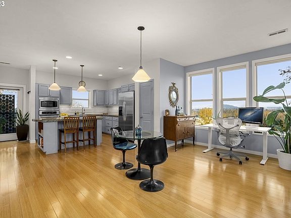 Prepare to fall in LOVE by this RARE end-unit townhome with spectacular RIVER and MOUNTAIN views. Renovated OPEN Living/Dining/Kitchen area just right for the entertainer or family wanting it all. Cozy up in front of the gas fireplace, and enjoy your panoramic PRIVATE light-filled refuge with VIEWS that will take your breath away. Minutes from downtown and popular south-waterfront. This is easy living at it's finest. 2 parking spots, plenty of storage. Definitely a home to be proud of!!