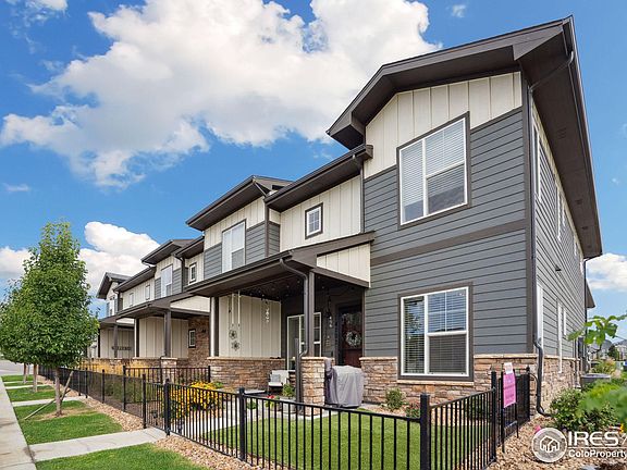 Back on Market - Sale of Home contingent Contract was terminated. Location, Location, Location! Amazing end unit townhome style condo by Landmark Homes with an incredible location facing south to a Explorer park and open space buffer to the east. This is truly a one-of-a-kind location in the wonderful community of The Lakes at Centerra. This End unit (one common wall) abuts open space directly off of the fenced front patio with artificial turf for ease of maintenance and is pet friendly. The home has a fantastic and bright south easterly perspective and an open floorplan. The Timberline plan features upscale quartz countertops, beautiful cabinets and features three bedrooms, spacious loft, high ceilings, tankless water heater, passive radon and laundry upstairs. This wonderful townhome style condo is in the amenity rich Lakes at Centerra community which features two lakes, trails, pool, playground, Explorer Club and High Plains Environmental Center. Close proximity to the Promenade Shops at Centerra, outlet mall, Chapungu sculpture park, Medical Center of the Rockies, restaurants, entertainment, transportation hubs and schools. Please note the Association fee also includes high speed internet and is reasonably priced for the inclusions!