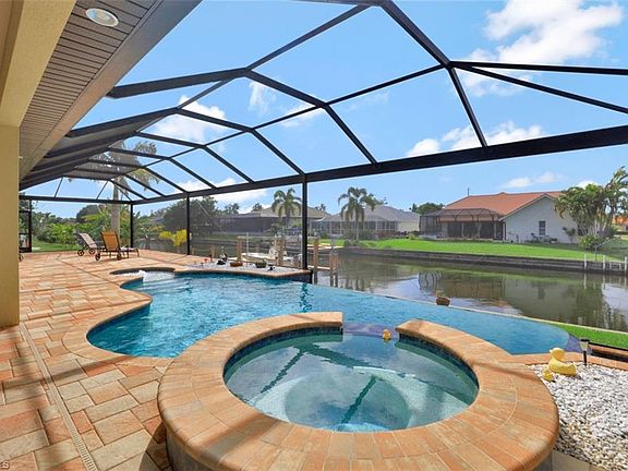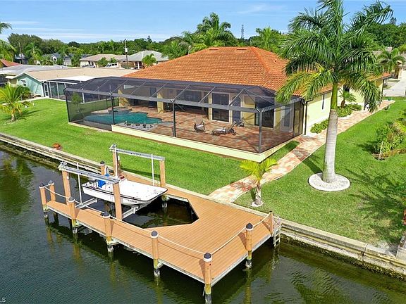 EXPERIENCE THIS ONE OF A KIND CUSTOM HOME. This beautiful large four-bedroom, one office, 3-car-garage home has more than 2,600 sq ft living area and is located on an oversized west exposure lot on "San Carlos Canal" with gulf access in a very quiet neighborhood with maximum sun on your pool area. Perfect as your primary residence or vacation home to rent out. Oversized boat dock with a 10,000 pound boat lift fit boats up to 28'. Impact doors and windows, instant hot water heaters, manabloc system, insulated garage doors, all pavers sealed, 2 A/C systems, alarm system, automatic sprinklers, huge electric heated negative edge pool and spa, outdoor shower and separate pool bath, spacious lanai, tray ceiling with background lightning, granite countertops in kitchen and all bathrooms, plenty of storage space in kitchen with lots of upper cabinets plus kitchen island, tiles throughout the home and crown molding in most of the house, frameless shower doors and much more. You have to see this home - better than new! 2020-03-07