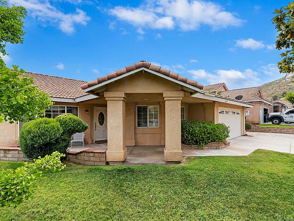 Charming single story home, in Jurupa Valley. Offered at 1550 sq ft and an open concept floor plan. 4 bed and 2 bath. Kitchen has Stainless steel appliances, granite, beautiful custom wood cabinetry with ample storage, a breakfast nook area, breakfast bar, and a bonus room that you can use as an office, game room, formal dining or even a 5th bedroom, that is off the kitchen. Brick fireplace in living room that is open to kitchen. Engineered hardwood flooring, recessed lighting in kitchen and bathrooms, Tile roof and custom front door are some of the upgrades. Enjoy your gorgeous view of mountains from your back yard while sitting on your wrap around patio. Private yard with fruit trees. Motor home parking and custom gates. 2 car garage with insulated garage doors and a fire door. Low taxes No HOA. Close to all amenities, schools, shops, freeways, entertainment, restaurants, golf course and freeways 91, 15 and 60. This home is super cozy and very well taken care off. A great floor plan in a great neighborhood! Hurry and schedule your appointment to see it or click on the 3D Tour Link.