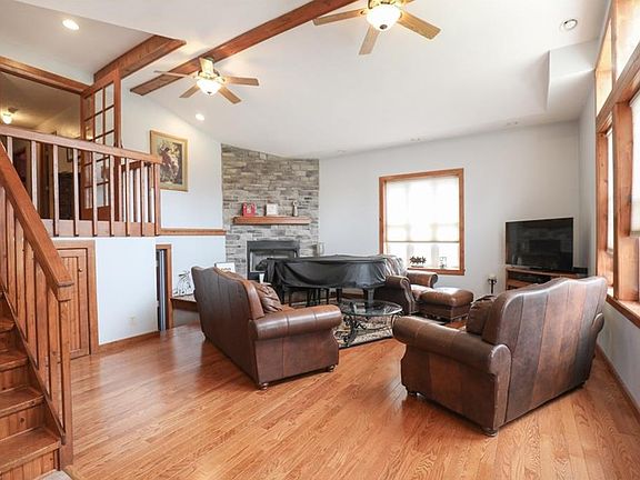 Awesome bi-level country home in United Local School District. Curb appeal galore with a magnificent front porch grand staircase featuring beautiful stack stone used extensively as a fabulous exterior accent. Home is tastefully landscaped and surrounded by woods and a babbling brook for total privacy and tranquility. Enter the lower level to find a cathedral ceiling in an awesome great room with a corner stone floor to ceiling fireplace, amazing hardwood floors and a palladium window. Optionally, enter home using the majestic exterior staircase and find yourself in the living room with hardwood flooring. The living room opens to recently remodeled kitchen with stunning ivory glazed cabinets, new counters and new tile flooring. The kitchen has upgraded stainless appliances and a breakfast bar and/or eat in/office area. The kitchen opens to a cathedral ceiling height spectacular sun room and/or dining room with skylights an abundance of windows and french doors. There are a total of 3 bedrooms with the master located off the living room for added privacy. The master has a large walk in closet and private bath. There is a hall bath near other 2 nice size bedrooms. The lower level has a Fabulous Rec Room with huge wet bar area and tile floors. Lower level also has a bath and laundry room (laundry hook-ups are also on main level.) This home is in pristine condition and nicely updated. The 2 car detached also has a office attached. Outdoor patio and great yard. This is a must see!