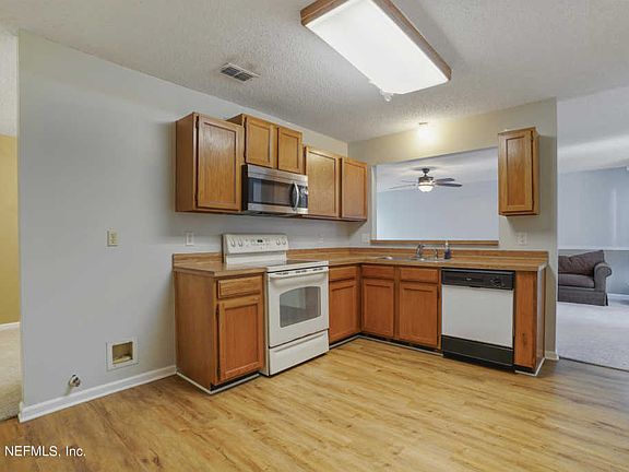 This home is a perfect investment, also a great option for the first time home buyer, or smaller sized family, looking to live in the heart of Mandarin. Brand new carpet, paint, and LVP floors throughout. This 1-story townhome has 3 bedrooms, and 2 bathrooms. A spacious kitchen with wood cabinets, and a new overhead light coming in soon. Separate dining room and living room. 2 car garage. Lovely and tranquil views of the pond with a fountain right in your back yard!