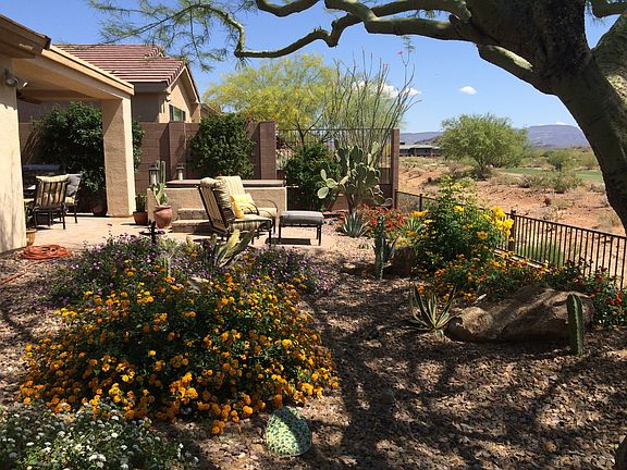 Incredible panoramic golf view lot with city light views and east back exposure. Granite counters, raised panel cherry, gas range, refrigerator, soft water, R/O, security sytem, extended great room w/gas fireplace, tiled master vanities, tub surround and shower, laundry room cabinets & sink and washer/dryer, ceiling fans. New hardwood floors throughout, upgraded base boards and paint. Built in bar and entertainment center. Custom remodel in 2013-2014.