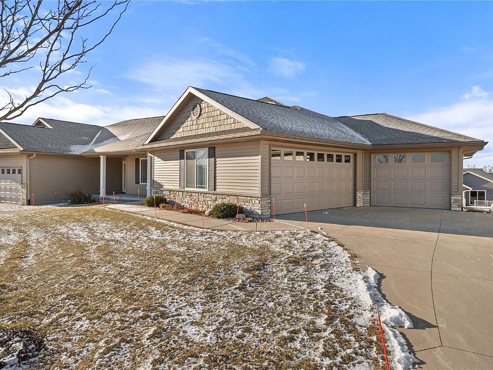 Like new 2017 3-bedroom 3 full bath condo home on a walkout lot with rare water views and green space. Main level living at its best, in this amazing home with so many upgrades and easy living features. The expensive upgrades have all been done for you including its Zero Step-Safe Access features, wide hallways with larger 36' upgraded doors and a sunny 4 seasons room. Unique to this unit, the sellers also upgraded and added a patio slider from their primary bedroom right to their deck to bring the outside in and enjoy their deck and view at leisure! For those who crave easy cleaning, a Central Vac was added for extra value and makes cleaning a breeze. This home is well designed to enjoy inside year-round or outside- front or back! Entertain or just have a glass of wine at the end of the day on in your four seasons sunroom, or move out to the deck with amazing views. Enjoy coffee on your covered front porch that's almost 19 feet and extra deep. Or add a workshop as the garage is an oversized three stall with over 836 sqft. Tons of healthy natural light and lots of large windows. Well-appointed primary bedroom with walk-in shower, dual sinks, great views and large walk in closet. Spacious main level laundry located right off garage for easy access and features a built-in coffee bar/buffet area or use as an ideal extra handy pantry. When guest or family come, you can also entertain in your walk out lower level rec room which boasts a covered patio area great for grilling or chilling! Easy for pets too, HOA says pets allowed (2 dogs up to 100lbs welcome) see HOA rules. The lower level bedroom would make a great mother-in-law suite, teen suite or extra office. A smart large storage room is available for any overflow storage needed or could be a great work out area. The seller also upgraded the driveway to include a handy personal parking pad. Already deep cleaned and move in ready now!