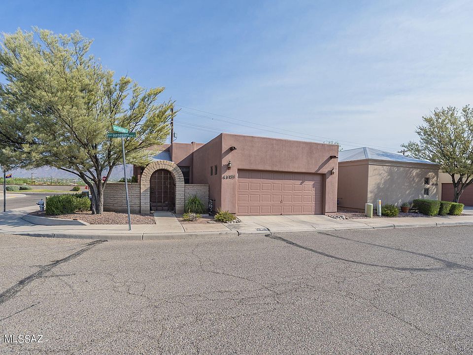 Not only is this property well kept, beautiful, with many upgrades, it also is in a prime location! Close to the Loop, the Mini Time Machine Museum of Miniatures (a must see), shopping, parks, and hospitals, all with a beautiful view of the Catalinas. Walk in through a spacious courtyard that wraps around to the backyard where you can enjoy the covered patio and watch the mountains change colors as the day goes by. Newer appliances throughout the home, newer AC, updated kitchen with beautiful breakfast bar, and new exterior paint. Spacious and open split floor plan, large primary bedroom with two closets. The neighborhood is thoughtfully landscaped and the neighborhood pool/spa is right across the street! Guest parking is conveniently just south of the pool.