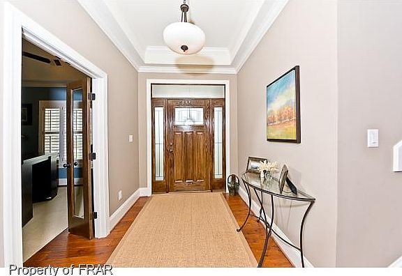 --Jack Britt Schools! Custom-built home on an almost-acre cul-de-sac lot!Reminiscent of a Pottery Barn magazine cover.The attention to detail in the • Custom built home on cul de sac with large wooded lot • 4 bedroom, 3 bath with plenty of upgrades, a gourmet kitchen, and lots of storage • Walking distance to Stoney Point Elementary and Jack Britt High School – the only A-rated high school in Cumberland County • Minutes away from new Food Lion and Harris Teeter, Traemoor Shopping Plaza, and Millstone 14 Movie Theater • Programmable sprinkler system in front and back yard • 6-foot privacy fence enclosing large back yard • 8-foot square raised box garden • Stone fire pit and seating wall • Natural gas line for outdoor grill (included) • Gutters and downspouts • Screened porch with cable and power for wall-mount TV • 2x6 construction on exterior walls • Tankless gas water heater means no more running out of hot water! • 3-car garage • Gourmet kitchen with upgraded stainless steel appliances, including Kenmore Elite 5-burner gas stove with range hood, 3-door refrigerator, dishwasher and microwave • Large island with quartz countertops • Breakfast nook • Formal dining room with beadboard wainscoting • “Drop zone” entry counter/cabinets • Laundry room with cabinets and sink • Living room with built-in shelving, electronics cabinet, wall-mount TV and surround sound wiring • Coffered ceiling in living room • Gas fireplace • Wood plantation shutters throughout • Crown molding • Luxury master bath with granite countertops, dual-head shower, oversized standalone bathtub • Alarm system with movement sensor/camera, glass shatter sensor, fire/CO2 sensor • Ceiling fans in all bedrooms/study • Vaulted ceilings in master bedroom, dining room, and bedroom/study • Upstairs oversized bedroom with full bath, walk-in closet, and built-in shelving • Large walk-in attic