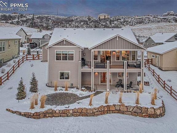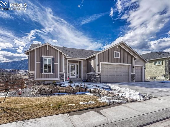 Pristine ranch with 5BD/3B/3CAR, finished walk-out basement and located in the gorgeous West End of Forest Lakes. No homes behind, lot backs to walking trails and open space! Enter the foyer and enjoy sight lines through the great room, which features a gas fireplace and walk-out to a 30’ x 20’ covered composite wood deck with water spigot, gas line, recessed lighting and panoramic views. The kitchen boasts an expansive quartz island w/sink & counter bar, S/S appliances, subway tile, walk-in pantry, gas range & coffee nook. Refrigerator included! The adjacent dining space offers breathtaking views through large windows with custom treatments. The main-level primary bedroom features dreamy views & an adjoining bath w/double vanity, large walk-in shower w/window, tile floors & walk-in closet. A second main-level bedroom has plantation shutters and would also make an ideal home office. Completing the main level is a full bath and laundry space with sink and access to the garage. The basement family room offers amazing views, gas fireplace, wet bar w/tile backsplash and a walk-out to a 30’ x 20’ patio with gas line, a paver walkway and a circular paver patio. Rounding out the basement are 3 bedrooms - each w/walk-in closet, one w/a full ensuite bath, one with mountain views and an additional full bath. The garage boasts an available 220-volt outlet, 2 garage door openers, an epoxy floor and a service door. Be sure to note this home’s professional landscaping and the ideal foothills location in this master-planned community w/miles of trails, acres of open space, a park & 65-acre private lake all within minutes of Lewis-Palmer School District schools and I-25.