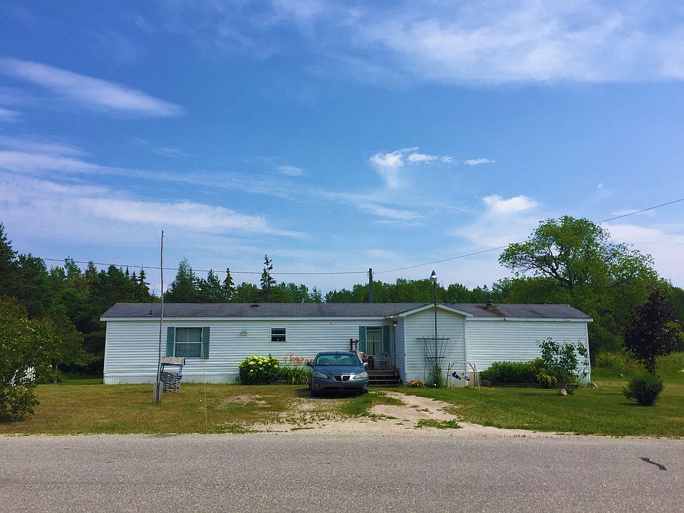 Immediate occupancy in the 3 bedroom, 2 bath manufactured home. Large master bedroom with a big walk in closet and full master bath. Open kitchen/dining area and large living room. Down the hall is a 2nd full bath and 2 bedrooms. There is a big mud room at the entry for shoes and winter gear with a roomy closet for storage. Has a new dryer, a new roof around 2014 and a new kitchen in 2011. It's on a nice lot with an additional storage shed and elbow room. Not far from St. Ignace, I-75, the Casino and ORV trails.