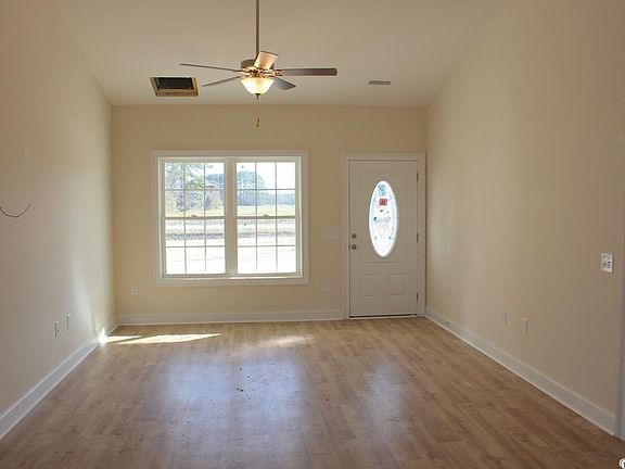 This home is located on just over a half acre of land in a non HOA area. It has 3 bedrooms and 2 baths which are split for privacy. From the front porch you enter an open floor plan of the living room with celing fan, dining room and kitchen opening into each other. The kitchen has custom solid wood cabinets with crown molding and knobs, stainless steel appliances, and a large breakfast bar/prep counter. The adjacent laundry room has a spacious pantry. The private Owners bedroom has a vaulted ceiling with ceiling fan. The Owners bathroom has a 5' walk-in shower, linen closet along with a double vanity. There is also a large walk-in closet. The 2 guest bedrooms and bath are on the opposite side of the house. There is a 23'x6' screened porch off of the back of the house which opens into a patio. Large side load 21'x20 2-car garage is finished and painted with automatic door opener and storage above. Smooth ceilings, RB3 window and door casings, 5 1/4" base boards, recessed lights, Irrigation system, gutters, sodded and landscaped yard. Close to downtown Conway and within 30 minutes of the beach. Video is for illustrative purposes only and may be of similar house built elsewhere. Square footage is approximate and not guaranteed. Buyer is responsible for verification.