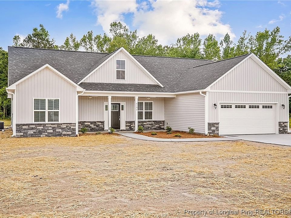 Presenting the Whip-poor-will in Grays Creek with an easy commute to Ft. Liberty, shopping and restaurants. This cute cottage style split floor plan comes with 3 bedrooms and 2 baths. The primary bathroom comes with a walk-in shower, double vanities, linen closet, private water closet, and large walk-in closet. Enjoy the open concept floor plan with kitchen that comes with stainless steel appliances, granite tops, and a breakfast bar. Enjoy a relaxing evening on your covered back porch. 1% lender credit on loan amount available when using preferred lender, Christy Strickland w/ Atlantic Bay Mortgage, 910-574-2105. Welcome home!
