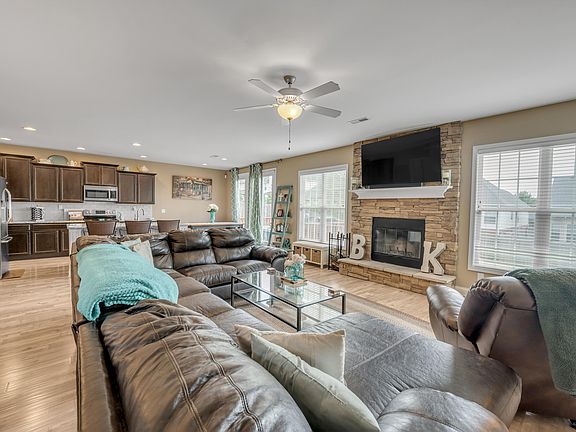 Move-in ready home with a FANTASTIC floorplan in popular and convenient Glasford. This home has it all; tall ceilings, modern blond flooring, spacious open great room / kitchen combo with large island. Tons of natural light in the great room with a wall of windows lining the stone wood burning fireplace. Second floor features a convenient laundry room and a dreamy primary suite with walk-in shower and custom-closet. Two additional nice sized bedrooms AND a bonus loft space perfect for entertainment area or home office. Tons of storage throughout, including a drop-zone outside the 2-car garage access, an oversized pantry and large closet spaces throughout the home. Enjoy the outside space with the private deck overlooking the flat backyard and fire pit area for fall s'mores making! Easy access to the dining and shopping of the Summit. Call now for your private showing.