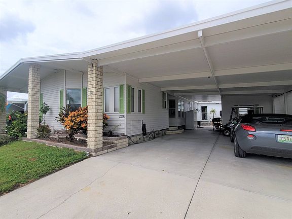 Reduced $169,900 Unfurnished Come check out this beautiful waterfront property. This home has been updated and remodeled. Large open floor plan that's perfect for entertaining and large gatherings. This property is made for entertaining and is clean and well maintained. Featuring 3 large bedrooms and 2 bathrooms. This home is a 1989 Palm Harbor, we consider this the Cadillac of manufactured homes. Coming in at a whopping 1,712 sqft not including the 12x16 enclosed airconditioned Florida room! WOW! It's rare you find a manufactured home this large. The outside has nice curb appeal with a huge double driveway, covered carport, 2 storage sheds and a large pavor patio area. The driveway and carport could accommodate a golf cart, motorcycle, boat and 4+ cars comfortably. Tons of space. The first storage shed is perfect for your tools, bikes and holiday décor. The second shed is smaller and great for your beach and pool gear. The pavor patio area is an awesome addition for grilling, drinks and Sunday football. Plenty of room for a game of cornhole. Stepping inside from the carport you enter the open dining room; this room is currently being used as an office. This area could also be used as a game room, it's large enough for a pool table. The master bedroom has French doors for privacy. This room is enormous with a large wall to wall step-in closet. Remodeled ensuite bathroom with a walk-in tiled shower, skylight, double vanity, new light fixtures, toilet, and a cabinet unit for your linens and toiletries. The first guest bedroom is oversized with a nice sized closet and a large wall unit with storage underneath. The third bedroom features a walk-in closet. Guest bathroom has a tub/shower combo and a skylight. Indoor laundry with a washer and dryer is a feature everyone loves. Kitchen and living room are large and open. The living room has a wall of windows overlooking the lake. Built-in corner bar with a granite countertop, top and bottom cabinets, drawers and a sink. The granite bar accommodates 2-3 bar stools comfortably. The kitchen features granite countertops, large center island with a cook top, built-in oven, double sided stainless sink, dishwasher and a large LG stainless refrigerator. The kitchen has two skylights over the island for extra lighting. Plenty of cabinet and counterspace. The sliding glass door leads out to the side enclosed air-conditioned lanai. This room could be used as a second living room, office, den or a man cave. The options are endless. The rear of the home has a screened patio and a covered patio overlooking the lake. Great spot to relax and watch the wildlife. In the evening the sunsets are magical. The floors have been updated with a beautiful vinyl plank, except for the guest bedrooms. This home comes with all the bells and whistles. The shingle roof is only 2 years old. AC is 5 years old, and the yard has irrigation. If you are looking for a waterfront property with space to entertain.....Look no further! Call today, to make this your Florida dream home! Colony Cove is an age qualified (55+) five-star resort community of manufactured/mobile homes. The "Cove" boasts 5 clubhouses, 6 heated pools, a riverfront pavilion and private fishing pier, a private marina, a fenced dog park (very pet friendly), tennis, shuffleboard, new pickleball courts, 2 new fitness rooms, 24-hour patrol, clubs of every interest, and much more. There are daily planned activities throughout the park. Bottom line, if you get bored here, it's your own fault! The lot rent in Colony Cove is based on the home's location. While the monthly lot rent may not be the lowest around, it's by far the best value for the money. Not only does the monthly rent cover all of the amenities of the community listed above, it also covers almost all other monthly expenses such as water, sewer, trash pickup. All property taxes, lawn maintenance...pretty much every monthly expense except electricity and internet. The current lot rent on
