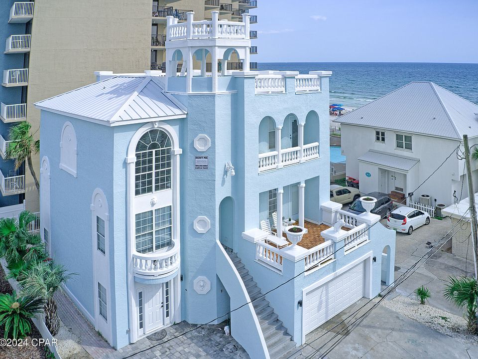 Would you like to own your very own Castle by the Sea? **RARE FIND** private beach access & incredible ocean views from each level of the home, multiple balconies and a rooftop with endless ocean view! No crossing public roads to reach the beach from this home- just steps away from the ocean. There are very few homes like this in the panhandle and nothing close for the price. 4 bedroom, 3 bath with an additional loft area! This house has 2 full kitchens, making it perfect for entertaining! Short-term rentals are allowed. Close to dining, shopping, and all that PCB has to offer, and tucked away on a private beach access street without thru traffic. Walking distance to Gypsea Crepes, Finn's Island Style Grub, and Liza's Kitchen-just to name a few. Your beach oasis awaits you, don't miss out!