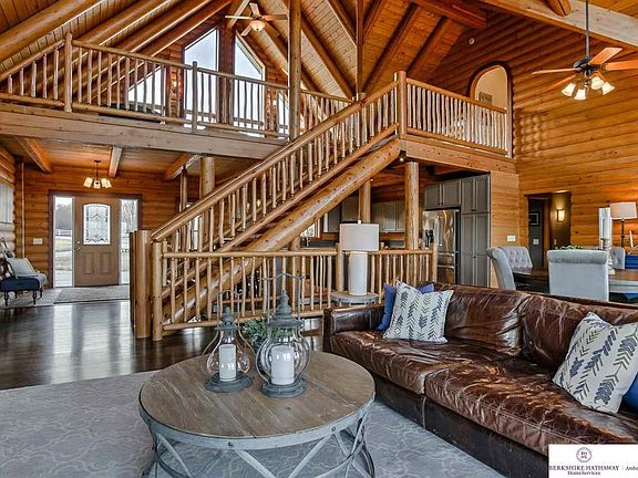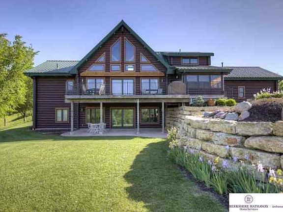 10 ACRE PIECE OF PARADISE! Looking for space, privacy, wildlife, or maybe a couple of horses? Here you go! Beautiful yet energy-efficient Luxury LOG home. Popular 1.5 story w/ spacious master suite on main. This estate offers, gorgeous views through every window, vaulted ceilings, stunning exposed log beams & a suspended staircase. Recently updated kitchen w/ SS appliances, Jen-air cooktop/grill, quartz countertop, & custom hardwood floors. Enjoy outdoor living at its best! Heated pool, firepit, expansive patio, hot tub/sunroom, 46' deck spans the entire back that overlooks the tree-lined creek. Amazing limestone stone steps & walls, expansive patio, fire pit. Use the huge heated 40'x 60' shop all year long w/ its concrete floor, 3/4 bath & office. Energy-efficient upgrades include Pella windows, Trane Smart home heat pump, Rheem Smart water heater, radiant floor heated floors. High-speed internet, Ft Calhoun School District, conveniently located 20 mins from shopping/Omaha metro area