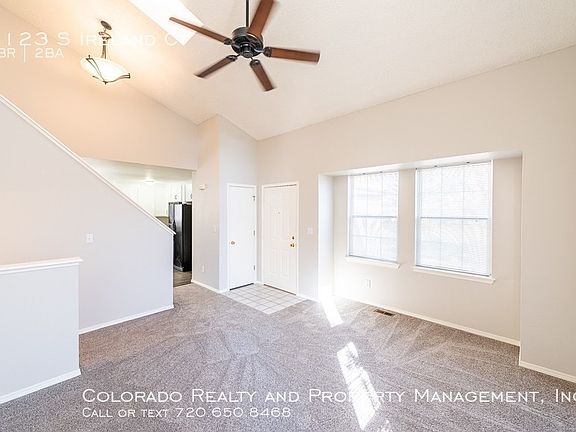 SCHEDULE A SHOWING ONLINE AT: showmojo.com/lh/c2e1d2c0e2 This renovated single family home in Aurora features brand new paint throughout, brand new carpet throughout and an updated kitchen! The kitchen features modern updates, including brand new flooring and room for an eat-in table. The large living room with vaulted ceilings welcomes you into the home. Bright, open and airy! Attached two car garage. Storage shed in backyard is for tenant's use. Home is located near the end of a cul-de-sac street. Located near the Spring Creek Park and Sunrise Park. Close to Southlands shopping mall! Enjoy the tax rates of Unincorporated Araphaoe County. Cherry Creek School District! Easy access to E-470, I-25 and I-70. Flexible lease terms 8-18 months. One small dog is allowed at the owner's discretion with an additional deposit and references however, no dogs of an aggressive breed.com/tenant-frequently-asked-questions/ This property is a non-smoking property. We are pledged to the letter and spirit of the U.S. Policy for the Achievement of Equal Housing Opportunity throughout the Nation. We encourage and support a program in which there are no barriers to obtaining housing because of Race, Color, Religion, Sex, Handicap, Familial Status, or National Origin. All applicants over the age of 18 must submit an individual rental application AND pay a non-refundable $50 application fee. The following criteria must be met in applying: TransUnion Vantage score of 620 or above. A score of 619 550 will require an additional deposit and a risk administration fee. All scores below 550 will be declined. Gross income must be equal to 3 times the monthly rent. Applicants must provide pay-stubs covering 30 consecutive days of gross income. If self-employed, tax returns must be provided. No felony convictions of a violent or sexual nature or that involve methamphetamine or arson. Regarding previous rental history, no evictions or outstanding balances. Applicants will also be required to provide a copy of a valid form of identification. Before applying for the home please verify that the property is still available under the "Available Properties" tab. All application fees are nonrefundable. All other outside sources should be deemed unreliable. All photos are of the actual property unless noted are only representative of the size and space of the interior. Applicants must view the property in person to determine if the size and space of the property are acceptable to their needs and wants. No properties will be rented "sight unseen". We require at least one person that is going to be on the lease views the property first before applying. If you apply for a property without viewing it first, your application may be denied and the application fee retained. IMPORTANT: Applicants will have 24 hours from the time they view the property to submit a completed application including the required documentation. Only complete applications will be considered. For questions and more information, please email: Showings@ColoradoRPM.com 2 Car Garage Central A/C Community Park Forced Air Gas Water Heater Mini Blinds Private Yard Single Family House Stove Sump Pump