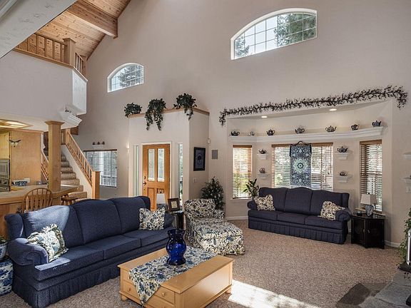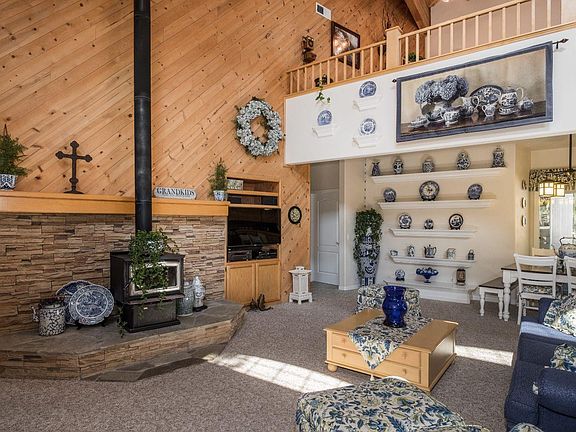 Utterly captivating split-level cabin in Ockenden Ranch nestled on easily accessible lot. This home greets you w/ soaring wood ceilings, open floor plan & natural light spilling in from all directions. Kitchen has a huge walk in pantry w/ expansive counter tops/ breakfast bar which open to living areas & perfect for family & friends. Main Floor: master bdr is huge & opens to a beautiful master bth w/ designer tiles, soaking tub & expansive windows. The 2nd bdr is adjacent to the laundry rm on opposite side of house from master. The bonus rm contains floor to ceiling cabinets & could be used as office or additional bdr. Upper split-level: stairs opens to enormous entertainment area w/pool table. Adjacent is a cozy loft style bdr w/ sinker wood flooring. Dream garage has built-in cabinets, T.V. & wood stove. Garage stairway leads to enormous attic which is partly renovated. Outdoor porches & patio showcase this beautiful retreat. Bed count is different than tax records, BTV if important.