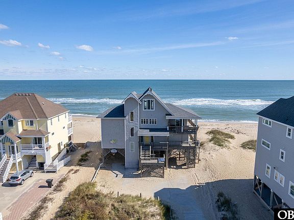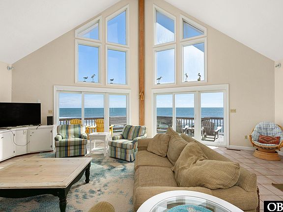 Discover an exceptional investment opportunity with this Kinnakeet Shores oceanfront property, located in the heart of Avon. This spacious home offers an inviting atmosphere with its bright and open layout, perfect for vacation vibes and boosting rental income. The great room features soaring cathedral ceilings and a wall of floor-to-ceiling windows that showcase breathtaking views of the Atlantic Ocean, ensuring unforgettable sunrises and endless views of those beautiful blue waters. Enjoy the fun loft space overlooking the great room, also with picturesque views. The extensive outdoor spaces include multiple decks with built-in benches and furnishings, providing the ideal setting for relaxation or catching some world famous OBX sunshine. Inside, a well-designed kitchen featuring upscale appliances and granite countertops, along with a breakfast bar that enhances meal preparation and entertaining. The dining area boasts stunning ocean views and opens to a covered soundside porch, complete with a built-in bench and picnic table. Each of the five bedrooms, including two luxurious king en suites, and offer direct access to the oceanfront decks. Be lulled to sleep by the soothing sounds of the surf and refreshing ocean breezes.