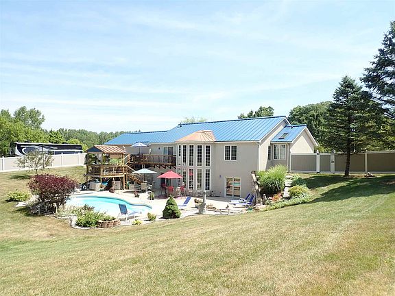 Wow-says it all! This is an entertainer's delight. Fabulous 5 bedroom home boasts over 3600 sqft of living space. The great room features vaulted ceiling, gas fireplace and newer bamboo flooring. The dining area also has vaulted ceiling and newer bamboo flooring. The dining area is open to the great room and just steps from the fabulous updated kitchen that includes all appliances, quartz counter tops, glass backsplash, kitchen island and space for a breakfast table. The master suite has walk-in closet, updated private bath with skylight, dual marble sinks, jetted tub and newer 4 foot shower with jetted shower. The 3rd bedroom on the main level is currently used as a home office. The lower level features large family room area with gas fireplace, game area, wet bar, full bath, storage areas, 2 bedrooms and tornado room. The backyard oasis presents a 16x32 heated inground fiberglass pool with pool cover surrounded by large concrete patio areas. Darling covered deck converstaion area overlooks the pool. The backyard is enclosed with privacy fence and wooded area. Newer standing seam metal roof. The 2 car garage has an extra workshop area 7x9. Also, 11'7x5'7 mudroom just inside home from garage. This home is a must see!!