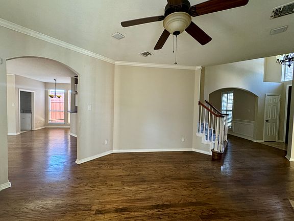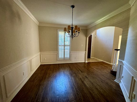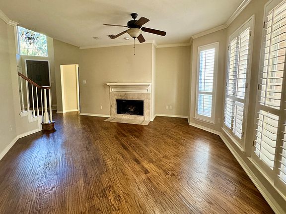 Classic 4 bedroom 2 and a half bath home features wood, vinyl and carpeted flooring, marble, wood burning, fireplace, custom wood front door, decorative light fixtures throughout, plantation blinds and mini blinds, master bedroom on first floor with over size tub and shower, two master closets, oven, dishwasher, disposer, refrigerator, pantry, utility room, rear entry garage, wood fenced backyard. Tenant pays utilities