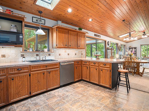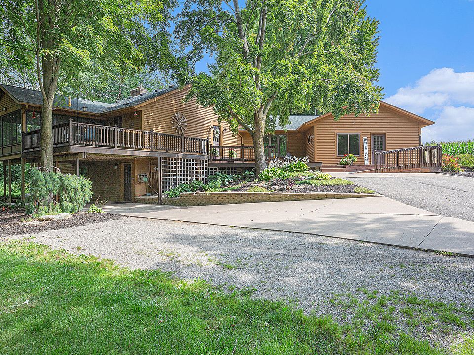 Looking for a secluded home on 2+ acres with an outbuilding? Look no further than this opportunity. The main portion of the home has a primary bedroom, full bath, kitchen with dining area, living room, main floor laundry with office area and large 3-seasons room with deck. Also on the main floor is an in-law suite, or, a second primary suite which include bedroom, bath, kitchen with dining area, & family room. Many options with this space. The lower walkout level has two additional bedrooms, full bath, family room with fireplace, and storage. The exterior of the home has a wonderful deck area to sit under the mature trees that offer tranquility from the world around. The outbuilding is approximately 34x72 with plenty of room for your vehicles and toys. Offer deadline Fri Sept 6 at 2pm