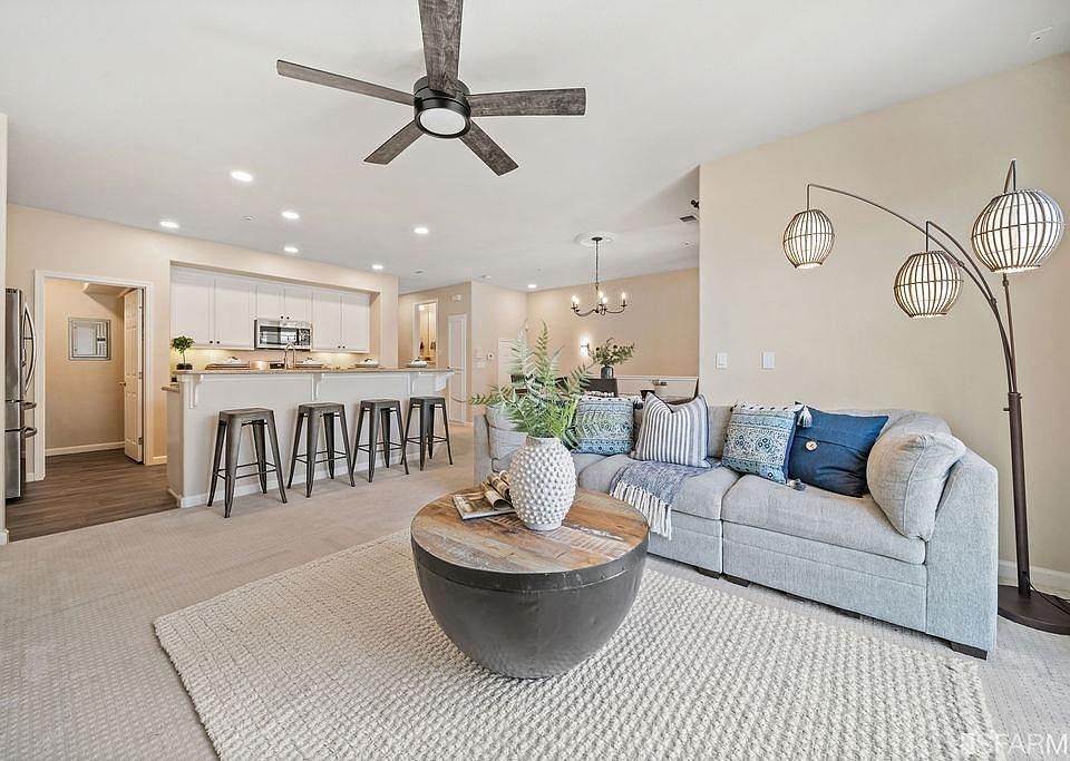 Welcome home to the The Villas at Dublin Ranch! This sought after townhome style condo offers luxury living in a prime location. Built by the reputable Toll Brothers, this north facing unit offers a more private entrance off of the courtyard. The lower level includes a two-car attached garage. Entertain while cooking in its gourmet kitchen featuring granite countertops, breakfast bar, stainless steel appliances, gas range and a new kitchen sink. The kitchen overlooks the family room highlighting a cozy gas fireplace and dining area which leads out to a generously sized covered balcony for extended outdoor living. Its nice open layout makes an ideal entertainment space along with a half bath for the convenience of your guests. Retreat to the upper level where you'll find two spacious bedrooms and two full baths. The primary suite boasts a large balcony, walk in closet, ensuite bath with dual sinks, soaking tub and stall shower. Great location within the complex being steps away from resort style amenities including a pool, jacuzzi, outdoor showers, gym with TVs & a clubhouse with kitchen. Double pane windows throughout, newer washer/dryer and water heater only about 2 years old. Central location near top ranked schools, parks, grocery stores, outlets, Kaiser, Bart and Hwy 580/680.
