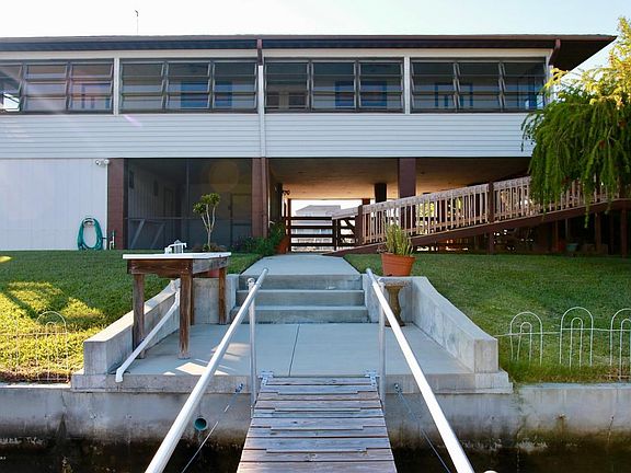 Waterfront home on deep wide saltwater canal with direct access to the gulf, seawall, dock and fish cleaning platform new in 2015, home redone in 2017, new paint and flooring throughout, all outside railing and handicap accessible ramp in rear of home refinished and updated, roof in 03 and air in 06. Open airy vaulted ceiling great room with with access to tiled back patio; two back bedrooms also open onto patio. Large workshop with bench and shower on lower level along with separate enclosed storage area. This is a no frills home but in great shape in a wonderful location with great neighbors ( I know I'm one ), it's ready for you to put your own personal stamp on it and make it your own.