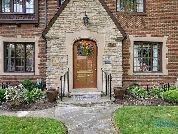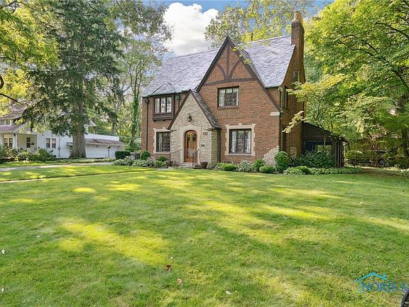 This exquisite brick English Tudor has been meticulously maintained by the same owner for over 50 years. Spanning 3 levels, the home features 6 beds,3.5 baths, and a main floor fireplace with limestone from Kellys Island, setting the tone for warmth and elegance.The primary suite includes a bath and a second fireplace, while a slate roof that lasts a lifetime and leaded glass windows enhance its timeless appeal. The basement w/terrazzo flooring offers extra living space, fireplace, and ample storage. Outside, a screened-in porch, 3-car garage, irrigation system. A rare Toledo gem!