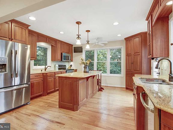 Traditional Colonial Home Has Been Transformed* 5 BR Colonial* Open Concept Custom Dream Kitchen*Cherry Cabinets, Wine Refrig, Pantry, Soft Close Drawers, List Goes On & On* Family & Living Rms Open To Kitchen* Maint Free Deck* 2 Car Garage Incl Storage Below* Open & Shaded Backyard Offers Add'l Parking For Large Gatherings* Private Setting* NO HOA! SHOWS VERY WELL! Gorgeous master suite with large walk in shower and upstairs laundry. Vanity area attached to master.