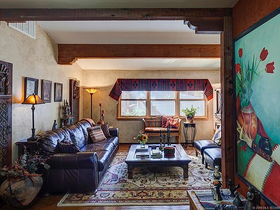 Warm and welcoming midtown ranch hm w/delightful old world charm. Fantastic space for the chef in you w/large galley style partially open kitchen featuring beautiful custom spalled oak cabinetry, granite counters, saltillo tile flooring. Room next to kitchen could be LG formal dining or dine/den combo. Bright sun-bathed rm w/sep ext door, could be used as office, art studio or addt'l liv space. Interior access to storm shelter. Peaceful spacious back yard w/maint-free composite decking. WON'T LAST!