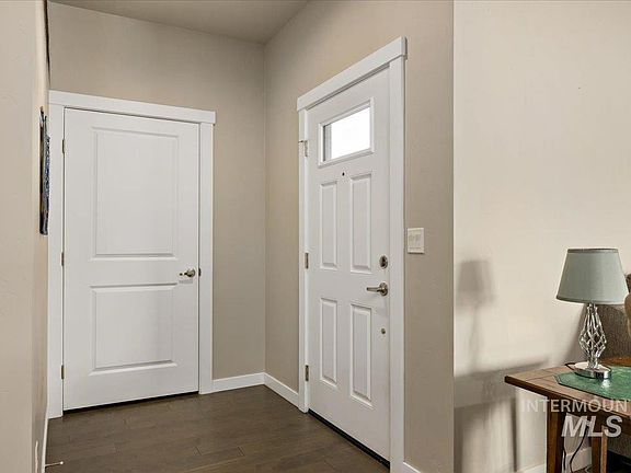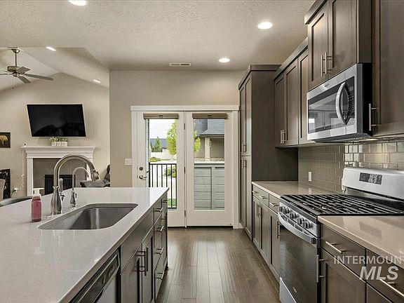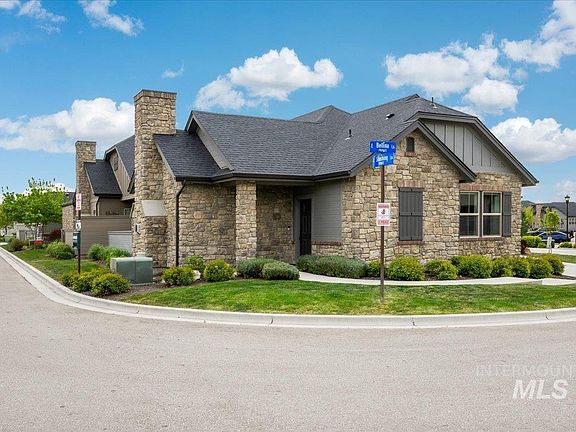 Come see this SINGLE LEVEL-Patio Home just 4 Years New! LOW MAINTENANCE & EASY LIFESTYLE. Rare stand-alone model. NO ATTACHED WALLS to other townhomes. Incredible curb appeal on corner lot in a private, gated luxury community. Vaulted ceilings, large windows & cozy fireplace. Gourmet Kitchen, EXTRA LARGE ISLAND, custom cabinets w/shelf pull-outs, quartz counters, hardwood flooring & water filter at sink. Tiled master bath/shower, dual sinks & walk-in closet. Whole house Puronics Water Softener. Deep sink & extra storage in Laundry. Wide doorways and halls. Extra Deep Garage 24 Feet. Private, covered patio w gate. HOA offers access to beautiful 2,600 sf Clubhouse, 24hr fitness gym, catering kitchen & meeting rooms. Community offers walking trails, parks and private outdoor pool. HOA provides landscape maintenance, snow removal & long-term exterior repaint & roof replacement. Easy access to freeway, Top Golf, the Village at Meridian, entertainment, restaurants & shopping.