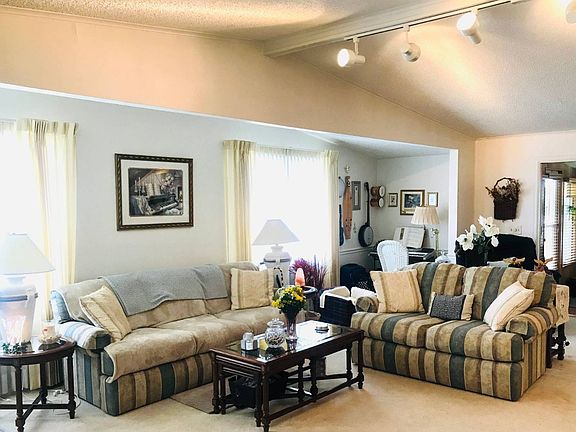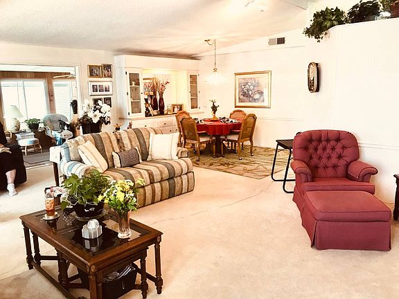 This spacious, well cared for, 1459 square foot, 2B/2B home in the sought after 55 plus community of Colony Cove in beautiful Ellenton Florida. Where the young at heart live and play. Large carport with plenty of parking and outdoor seating area. The attached storage unit with washers & dryer, (included) plenty of cabinets & storage, the built-in workbench is a bonus-also has AC window unit. The front of the home has a seating area on the covered patio. Rheem hot water heater and the AC unit, both 3 years old. Convenience of the Rain Bird sprinkler system for low maintenance yard care. The roof has a roof- over for peace of mind. The energy efficient, double thermal pane windows and vinyl siding also keep down heating and cooling costs and help you enjoy maintenance free living. The large enclosed sunroom offers extra space which is used for entertaining, game room, home office and is under heat and air. Open living and dining area with cathedral ceilings, built-in buffet hutch in the dining area. Carpet in the main living area as well as bedrooms. Vinyl in the kitchen and master bath. Kitchen is darling with the updated cabinets and counter tops. Plenty of pantry and extra storage. Newer appliances and a beautiful slide in Kitchen Aid convection stove/oven with vented hood and breakfast nook seating. Trash compactor is included. The master bedroom large enough to fit a king size bedroom suite, plus the oversized double walk-in closets. The bathroom suite has dual vanity sinks with plenty of storage, a high rise commode and walk-in shower. A few pieces of furniture included. Lot rent is $900.66 a month which includes: property taxes, lawn maintenance, water, sewer, trash and recycling, several pools, club houses and many more amenities. One month lot rent paid for if home is bought before the end of December!!! These offers only apply on respectable offers!!! All listing information is deemed reliable but not guaranteed and should be independently verified through personal inspection by appropriate professionals. Integrity Mobile Home Sales cannot guarantee or warrant the accuracy of this information, measurements or condition of any property. Measurements are approximate. Lot rent subject to change.