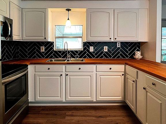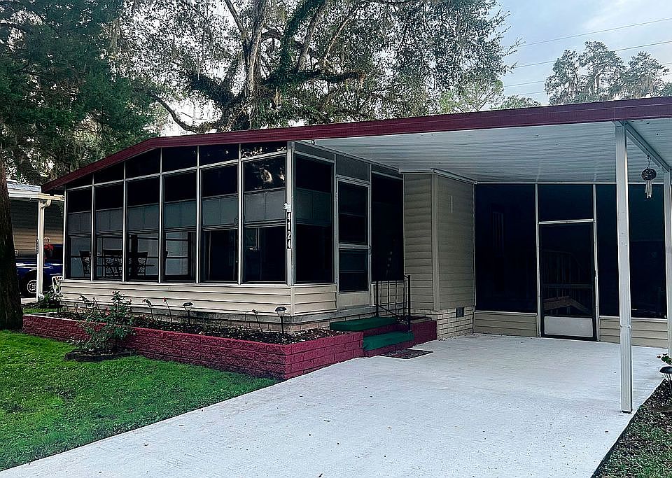 Fully Renovated 2 Bedroom / 2 Bath 1008 SF & 200 SF Enclosed Porch -New Flooring, Insulation and Vapor Barrier, Roof & Driveway Sealed -New Kitchen Appliances, Butcher Block Counters, Cabinets, Tile Backsplash -New Ceiling Fans, New Water Heater, Washer & Dryer -Extra Large Master Bath Shower and Walk In Closet w/ Shelving -Enclosed Front Porch w/ Sliding Weather Shield Windows, Carpeted -Attached Storage Shed w/Washer & Dryer, Screened Entrance Patio w/ramp, Back Patio -Central Air and Electric Recently Serviced -Furnished Living Room, Dining Room, Patio Newly Renovated with open layout on tree lined street in Cloverleaf Farms. Tastefully appointed with rustic waterproof floors throughout, brand new kitchen, large accessible master shower, large closets, storage room w/ laundry, new ceiling fans, large enclosed lanai, carport, and furnishings in Brooksville's most established and active senior community. Cloverleaf lot rent $759 includes water, sewage, trash removal, landscaping, security, and access to all amenities: clubhouses, fitness center, pools, jacuzzi, sauna, fishing lake, and much more.
