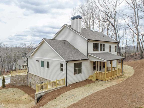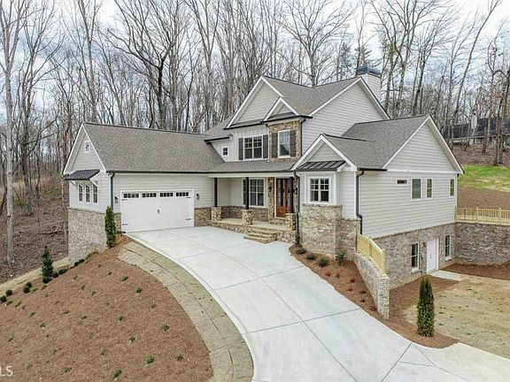 Welcome to Riverbrook Landing, an intimate lakefront community in north Hall Co. Each home includes a covered slip on the 16-slip community dock at no extra cost. This new build is situated on a great lot (.81 acres) overlooking Lake Lanier & north GA mountains. Craftsman home features gourmet kitchen w/ huge island, SS appliances, granite c-tops, ship-lap details, hardwood floors & open view to living room. Living room has gorgeous brick fireplace, high coffered ceilings & access to back porch. Master suite on main includes big walk-in closet, huge BA, double vanities, soaking tub & separate shower. Upper level features one en-suite, 2 addtl' BR w/ shared double vanity BA & large media/ bonus room. Massive unfin. bsmt is stubbed for full BA & french door separate exit. Covered front & back porches allow for perfect outside entertainment areas. Don't miss the lit golf cart path to the community dock area. Neighborhood located close to restaurants, shopping, sought-after schools & convenient to Gainesville & Dawsonville amenities.