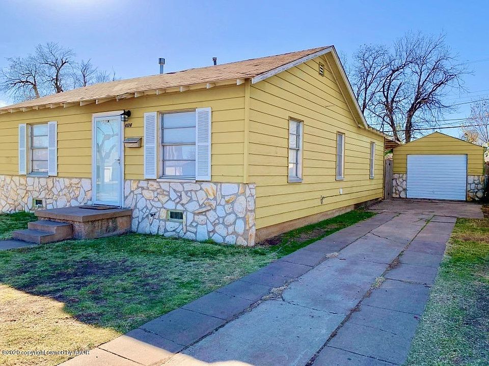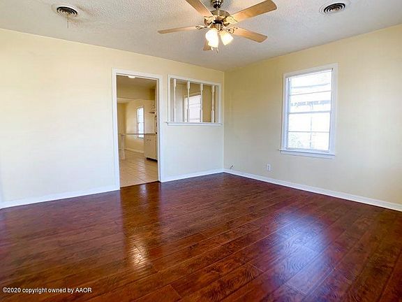 could be 2 living rooms or living room and office or good size dining room, 3 bedroom, 1 bath 1 car garage storm shelter.