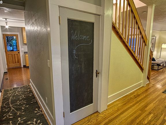 Perched above the street, this grand Old-PDX is nestled between maples, oaks & cedar giving it privacy + autumn color. Hardwood floors, coved ceilings + its open-circular floor plan add to its generous feel. Wood sliders off of the kitchen lead to a back deck w/ patio & sunshine. 3 full bedrooms upstairs w/bonus office space or 2nd kids room. Cozy reading nooks, upstairs bedroom balcony & master w/ window seat add to its charm. Quick hop to shopping (TJ's) and Woodstock cafes. Open Sat/Sun 11-1.