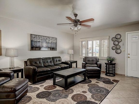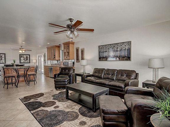 Lovely upgraded 3 bedroom 2 bath home with large cul-de-sac lot. Newer roof and AC. 2 car garage has an attached covered area for extra parking. Upgraded kitchen cabinets with granite counter tops. Tile floors throughout. A large exterior fireplace and fresh paint inside and out!