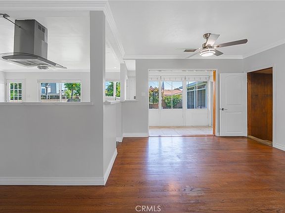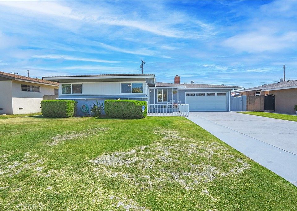 REMODELED 3 BEDROOM 2 BATH RANCH HOME ON A NICE LOT. THE FRONT YARD LEADS TO A FENCED FRONT PATIO, A GREAT SEATING AREA. ONCE INSIDE, THIS MID-CENTURY MIDEN FEATURES THE ORIGINAL HARDWOOD FLOORS. THE LIVING ROOM HAS A BRICK, MASON-BUILT FIREPLACE, PERFECT FOR THE HOLIDAYS AHEAD. THE LIVING ROOM IS OPEN TO A DINING AREA. THE KITCHEN IS LARGE ENOUGH FOR A BREAKFAST NOOK FOR THOSE INFORMAL MEALS. A CHEF'S KITCHEN FEATURES QUARTZ COUNTERTOPS, WHITE CABINETS WITH A LARGE STAINLESS SINGLE SINK, DISHWASHER, STAINLESS 5 BURNER GAS STOVE AND A FULL-SIZE DOUBLE DOOR REFRIGERATOR INCLUDED. 3 BEDROOMS WITH BLINDS AND CEILING FANS. THE PRIMARY BEDROOM HAS A JACK AND JILL BATH WITH SHOWER. THE MAIN BATH HAS A TUB/SHOWER WITH VINTAGE TURQUOISE ACCENT TILE REFLECTS 1955 CRAFTMANSHIP. EVEN A VINTAGE CLOSE LINE IF YOU DO NOT WANT TO USE THE DRYER. A 2-CAR ATTACHED GARAGE WITH OPENER THAT HAS DIRECT ACCESS INTO THE HOUSE. A BONUS ROOM FOR 350 SQ.FT AND AN ENTRY AREA IS NOT INCLUDED IN THE SQUARE FOOTAGE. A PERFECT FAMILY ROOM, HOBBY AREA, WHATEVER SUITS YOUR LIFESTYLE. CROWN MOLDING AND BLINDS ACCENT MOST ROOMS. THE PARK-LIKE BACKYARD HAS 2 LARGE SHEDS AND A SIDE AREA FOR STORAGE. A ROSE GARDEN, AVOCADO, LEMON, AND ORANGE TREE MAKES YOU AVOID THE PRODUCE AISLE WHEN IN BLOOM. RELAX ON THE PATIO OR KEEP COOL WITH CENTRAL HEATING AND AIR CONDITIONING AND DUAL-PANED WINDOWS ALL YEAR LONG. THE LOCATION IS ORANGE SCHOOLS, CLOSE TO ALL FREEWAYS, SHOPPING AND RESTAURANTS.