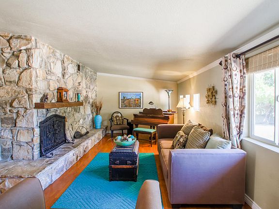 Beautiful custom cut colored stone w/ illuminated pillars take you to a front patio that features a peaceful fountain in this single story home. Inside more custom stone hold an incredible fire place while stained concrete & perfect hardwood floors take you through the rest. Other features include crown molding, tile & corian counters in bathrooms, fully upgraded master bathroom w/ dual showerheads, tile walls & shower seat, skylight, ceiling fans in all rooms, recessed lighting & an additional den/bonus room that is about 250 Sq. Ft. The kitchen includes upgraded white cabinetry, stainless steel appliances & granite countertops w/ subway tile backsplash. Backyard has sparkling gated pool, rich plants, green grass, dual fountains, & a covered patio all bundled on a quiet Quartz Hill road.