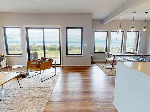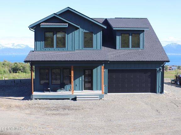 Newer Home on 1.5 Acres with 180 Degree views of Glaciers, Mountains, Spit and Bay. Thoughtful Modern open concept design. Main level living option! 4 bedrooms and 2 living spaces. LVP flooring, Solid surface in kitchen and window sills. Tiled Bathrooms, Soaker tub in upstairs Primary Suite. SOLAR panels! This checks all the boxes, A must see!