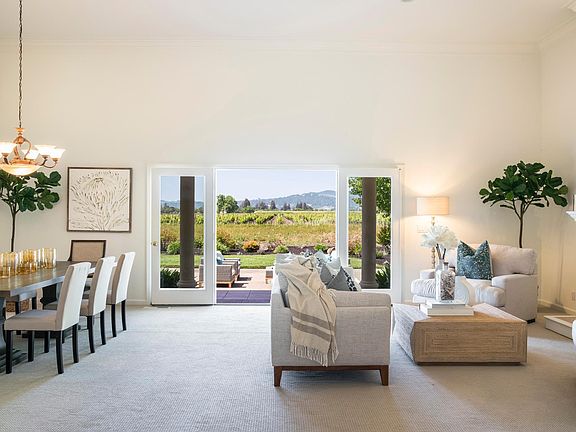 Napa Valley vineyard estate featuring rare Valley floor location in coveted Big Ranch Road Corridor of Oak Knoll AVA with spectacular vineyard & mt views minutes to downtown Napa, Yountville, wineries, shopping & world class dining! Fully furnished single level 4 bdrm 3 bath plus bonus room 3521 sq ft custom home offering stunning vineyard & mt views from every window & door. Perfect synergy of indoor/outdoor living with series of French doors opening to multiple outdoor entertaining areas including partial covered wrap around porch, expansive patio with seating & dining areas, BBQ, planter beds & 7 acres of vineyard. Open floorplan includes light & bright kitchen with new appliances, large center island, counter seating & informal dining opening to spacious family room with fireplace & access to outdoor entertaining areas. Formal dining & living rm, spacious main ensuite with fireplace & seating area, walk-in closet & access to backyard. 3 car garage, central air & more! Lease can be month to month or yearly All furniture, furnishings and linens are included in the lease