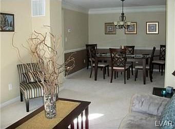 Once inside this home, you will be "sold". Spacious family room with gas fireplace. Bright and cheery kitchen with tile back splash, sliding door leading to private patio (10'x6'). Fantastic finished basement complete with large built in bar, great for entertaining. This is one of a kind. Special features include crown molding in living and dining room, lots of closet space, neutral colors throughout, dining room with chair rail, and convenient 2nd floor laundry. With all exterior maintenance provided. Easy access to Route 309 and I-78. Impress yourself, if you want the nicest condo in the development this is it. Better and cheaper than new. Won't and can't last at this price. Hurry before you lose out.