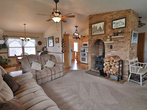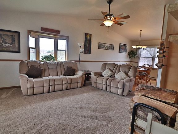 Cozy, move in ready 4 bedroom, 3 bath home in Cody's Cooper Lane area. A brick fireplace with a wood heating stove on the main level and a rock fireplace with a pellet stove in the basement. The property offers 2 dog fenced acres, end of road privacy, mature trees, garden ready, horses are welcome. Brick & rock exterior with a large wrap around deck. Oversized 2 car detached garage.