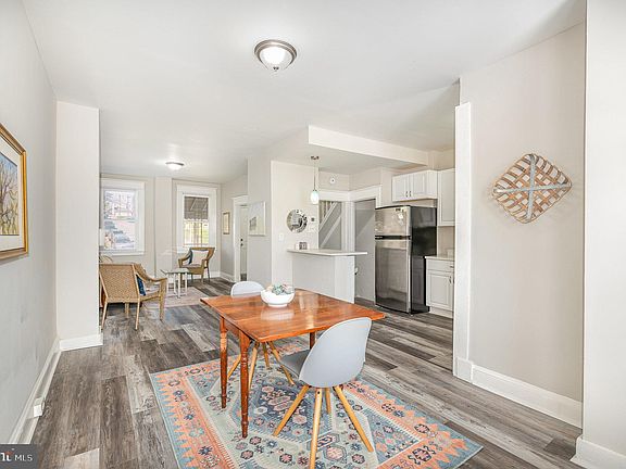 Welcome home to this charming 3-bedroom, 1.5-bath porch-front rowhome nestled on a quiet street in the West Forest Park neighborhood. Step inside, through the foyer, to find a fresh white kitchen featuring stainless steel appliances, quartz countertops, and a modern layout that flows into the dining and living rooms—all accented by stylish gray LVT flooring. A convenient half bath completes the main level. Upstairs, you’ll find three freshly painted bedrooms with brand-new neutral carpet and a full bath. One bedroom offers a cute balcony overlooking the rear yard. The finished lower level offers a flexible rec room, dedicated office space, storage room, and a laundry area with washer and dryer included. Enjoy the privacy of a fully fenced rear yard—perfect for relaxing, entertaining or even just a place for your favorite dog to run. Located just minutes from public transportation, major highways, downtown Baltimore, and Forest Park Golf Course, this home blends comfort, convenience, and value. Schedule your showing today!